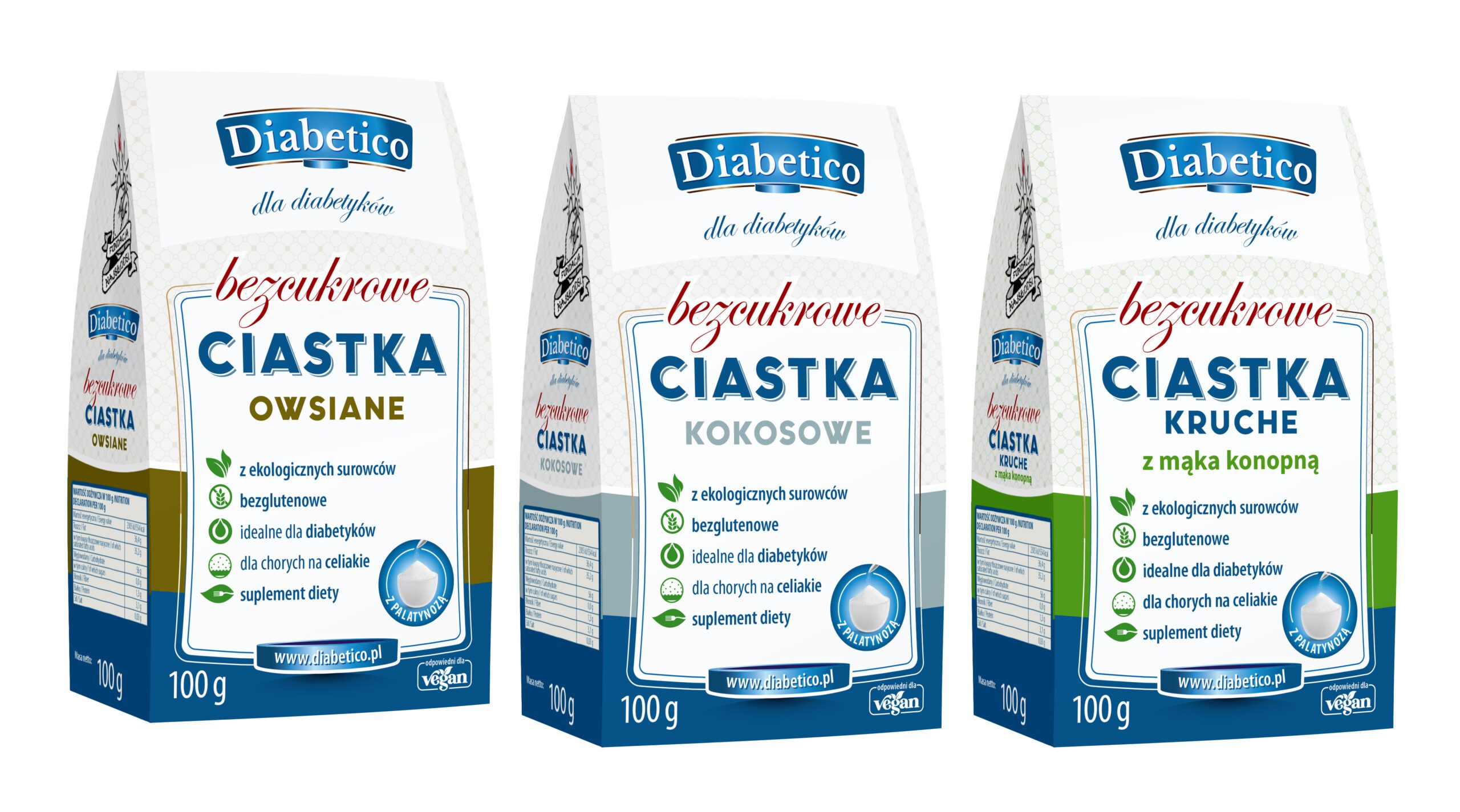 Logo Diabetico z dopiskiem „dla diabetyków” pełni rolę znaku zaufania – zawsze w tym samym miejscu, zawsze w tej samej formie. Dzięki temu konsument od razu widzi, że wszystkie produkty należą do jednej, wyspecjalizowanej linii.2