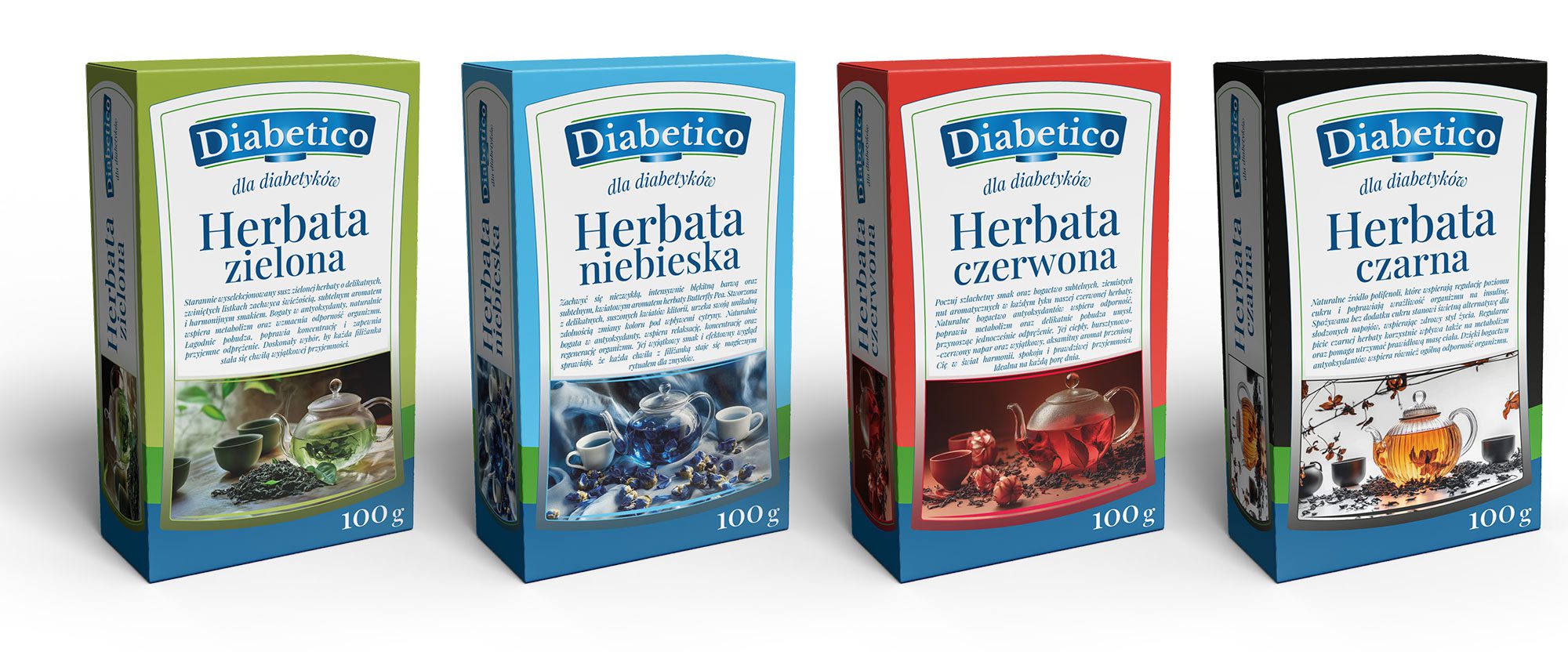 Każdy nowy smak lub kategoria (np. kolejne mieszanki ziół, nowe ciastka, inne przetwory) może wejść w system bez projektowania wszystkiego od zera. Wystarczy nowa ilustracja i dopasowany kolor akcentu, a Diabetico nadal wygląda na półce jak jedna, konsekwentna linia produktów dla diabetyków.