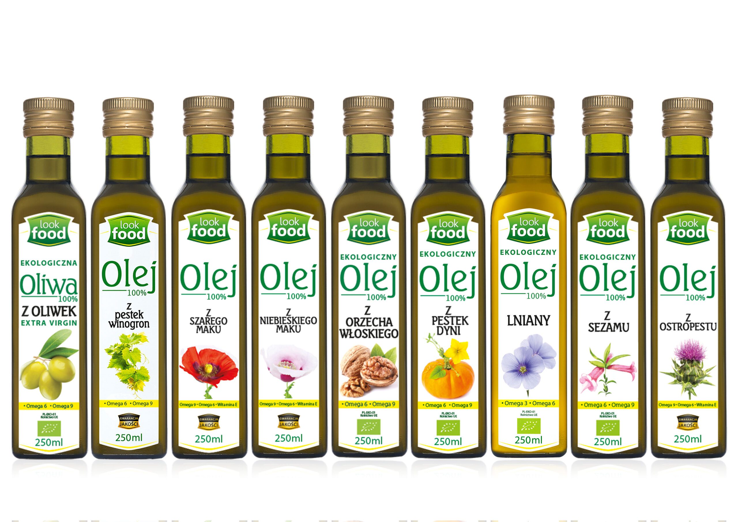 Kiedy baza systemu była gotowa, rozwinąłem ją w modularne rozwiązanie dla olejów, słodzików, ziół, błonników, tofu i superfoods. Każda grupa otrzymała własny charakter, ale wspólne kotwice — herb, żółty akcent, konsekwentna hierarchia i typografia — utrzymują rodzinność całego portfolio. To rozwiązanie skaluje się w praktyce: pozwala szybko wdrażać nowe smaki, gramatury i formaty bez ryzyka rozjazdu stylu, jednocześnie wzmacniając rozpoznawalność marki przy rosnącej liczbie SKU.